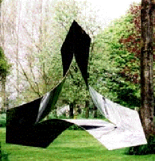 The Möbius strip was by now a well loved friend. ETERNITY was a solid stable form. I wanted to create something fluid and spacious around a triangle. It was to symbolise the JOURNEY through life which we all make, and which is so full of opportunities. I see the central space in this sculpture as the triangle of ETERNITY, but the sides have been shot off into `space', to form `bridges to horizons'. Already the `horizons' have expanded to the moon. I am sure Man's Destiny includes `space'.